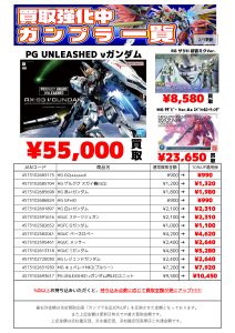 HG・RG・MGに加えて、PG UNLEASHEDなどの大型キットも強化買取中!